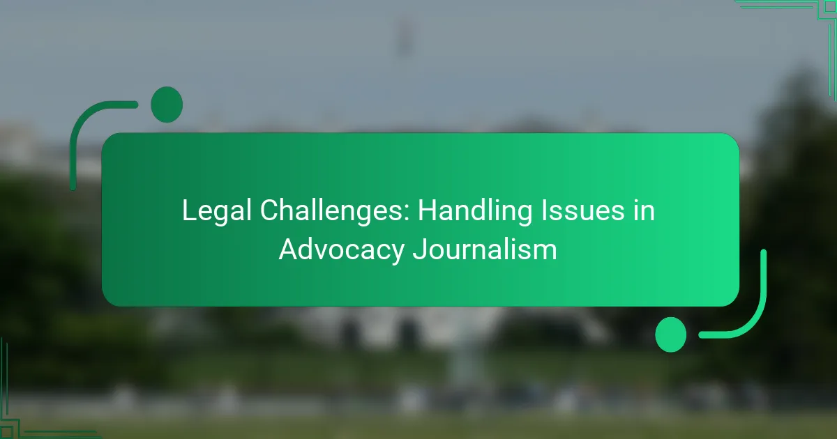 Advocacy journalists often encounter several legal challenges that can hinder their work. These challenges include defamation claims, invasion of privacy, and disputes over access to information, which can significantly impact their ability to report effectively.